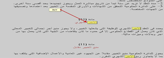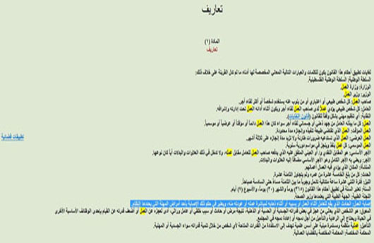فاختيار أي من هذه التشريعات والدخول لنصها الكامل، تجد أن كلمة الأجر التي بحثت عنها ملونة بلون مختلف عن بقية التشريع، لاحظ الصورة: