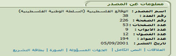 كما يظهر في أسفل الشاشة عدة أيقونات، العلاقات، النص الكامل، معلومات عن المصدر، الجهات المسؤولة، كما هو مبين في الشكل التالي: