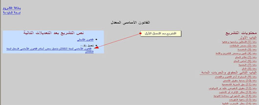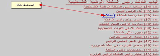 فعلى سبيل المثال عند الضغط على المادة (36) من القانون الأساسي المعدل - وهي مادة تم تعديلها - ستظهر هذه المادة بشكلها النهائي المعدل كالتالي: