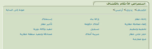 فإذا تم اختيار مصطلح إلغاء معاملة عقارية من داخل قائمة موضوع الأراضي فستكون النتائج على كما في الشكل التالي: