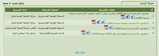 وتحتوي على التشريعات الصادرة من الحقبة العثمانية وحتى آخر تشريع منشور من قبل السلطة الفلسطينية من خلال الجريدة الرسمية(الوقائع)، وطريقة البحث هنا هي ذاتها التي كانت مقررة للإصدار السابق من المقتفي، وذلك بإدخال اسم القانون المراد البحث عنه أو إدخال رقم التشريع أو السنة التي صدر فيها التشريع.