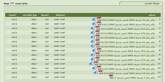 - المحكمة: من خلال هذا الحقل يقوم المستخدم باختيار نوع المحكمة المختصة بإصدار الحكم فيما إذا كانت محكمة نقض أم استئناف أم عدل عليا.