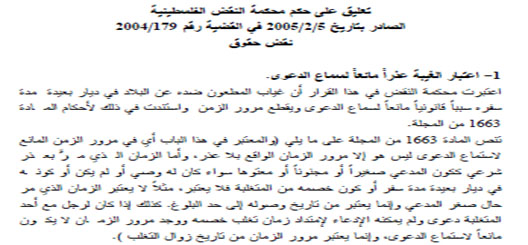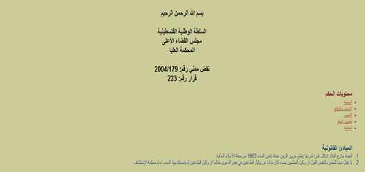 وتجدر الإشارة هنا بأنه يتم اختيار أهم الأحكام القضائية للتعليق عليها من قبل أكاديميين ومحامين وخبراء قانونيين متخصصين من داخل فلسطين وخارجها.
