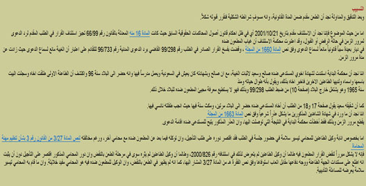 أيضا في منصف شاشة بطاقة الحكم القضائي يمكن ملاحظة النصوص القانونية التي وردت في الحكم القضائي.