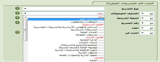 1) آلية البحث في قاعدة التشريعات المنفردة: